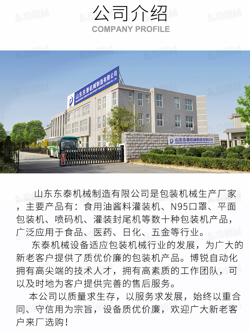 沈陽東泰機械隸屬于山東東泰機械,主營粉劑包裝機、醬類醬料包裝機、食用油灌裝機、食品包裝機、包裝流水線、灌裝生產線等產品,并且為東北地區客戶提供售后維修服務...