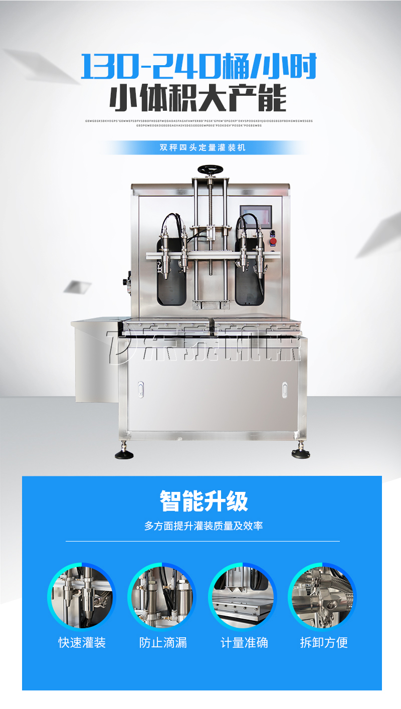 5. 該設備配備四頭(大小兩組)雙泵,凈重/毛重、自動/手動功能一鍵切換,進一步滿足客戶精度,速度,低投資需求。
