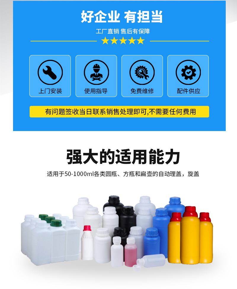 輸送機構及控制系統組成。整機結構簡單、調整方便。該設備為我司研制,產品在移動過程中,完成旋蓋動作。區別于常規旋蓋機,在旋蓋時需要停頓,會使物料晃出瓶口,污染瓶身。該機旋蓋不停頓,有效的避免了旋蓋停頓晃液,保持瓶身清潔。