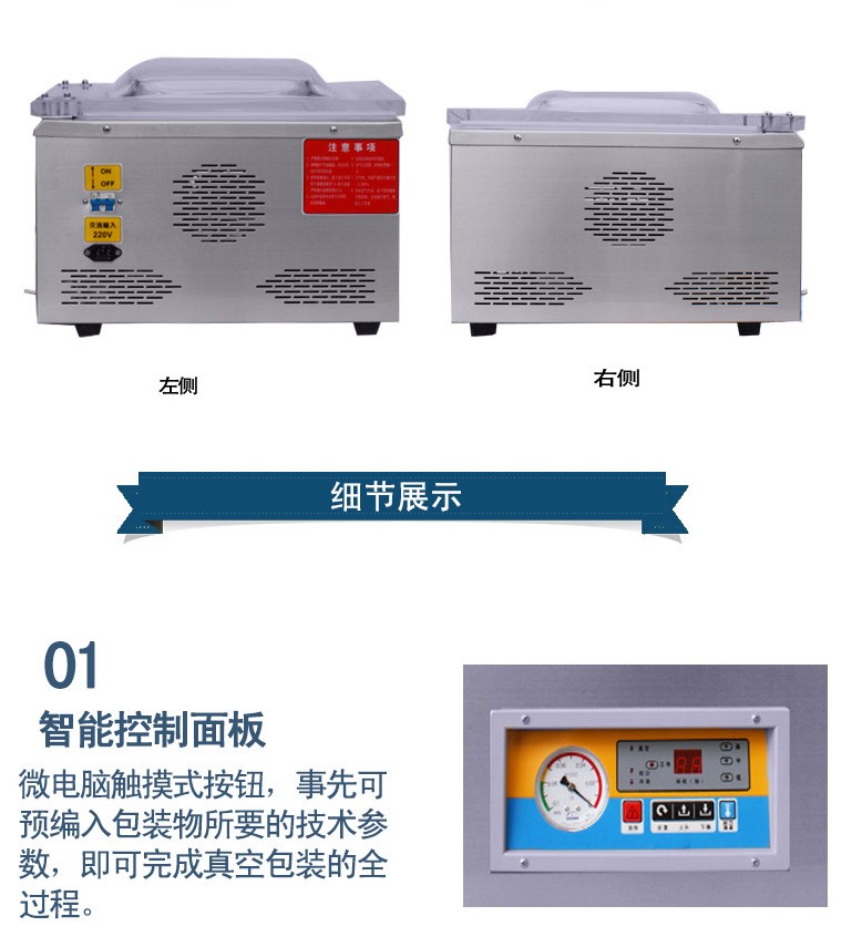 可有效的防止脂類品氧化和好氧性細菌繁殖而引起的物品腐敗和變質,達到保質,保鮮,保味,保色的功能,延長產(chǎn)品(商品)的儲存期限,同時對某些松軟的物品,經(jīng)過真空包裝后縮小包裝體積,便于運輸和儲存