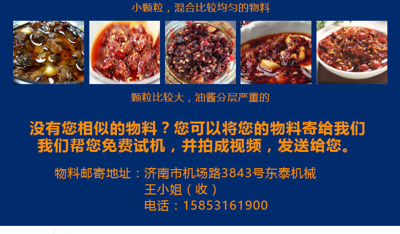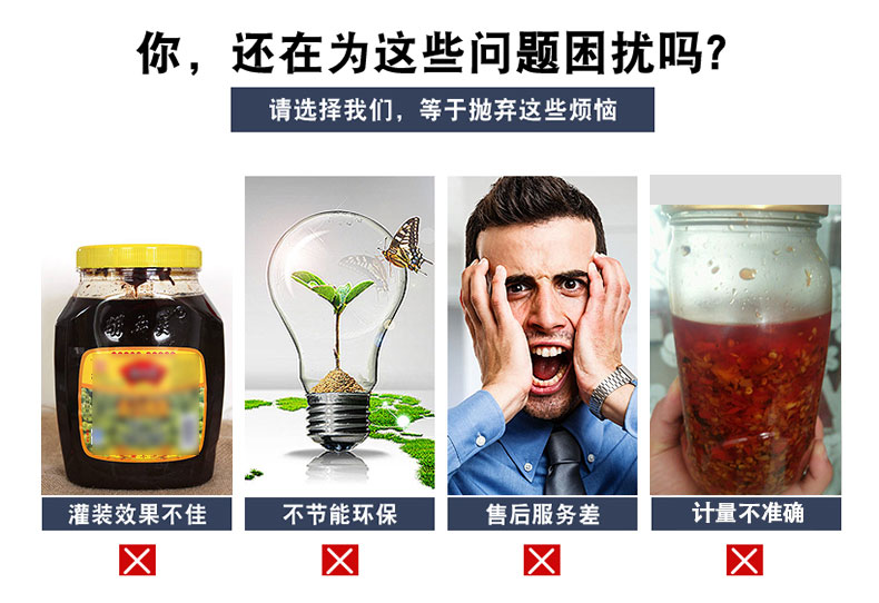 適用范圍:小型辣椒醬灌裝機(jī)主要適用于那些含顆粒的顆粒漿狀流體、半流體、膏體、醬狀類的物料灌裝,各種勻質(zhì)醬料、火鍋底料、老干媽辣椒醬、干煸牛肉醬、泡椒、牛肉粒醬、香菇丁醬、八寶菜、蘿卜丁、含干煸臘肉丁、辣子雞丁、油炸花生等大顆粒、含油量少等干煸辣椒醬的灌裝。